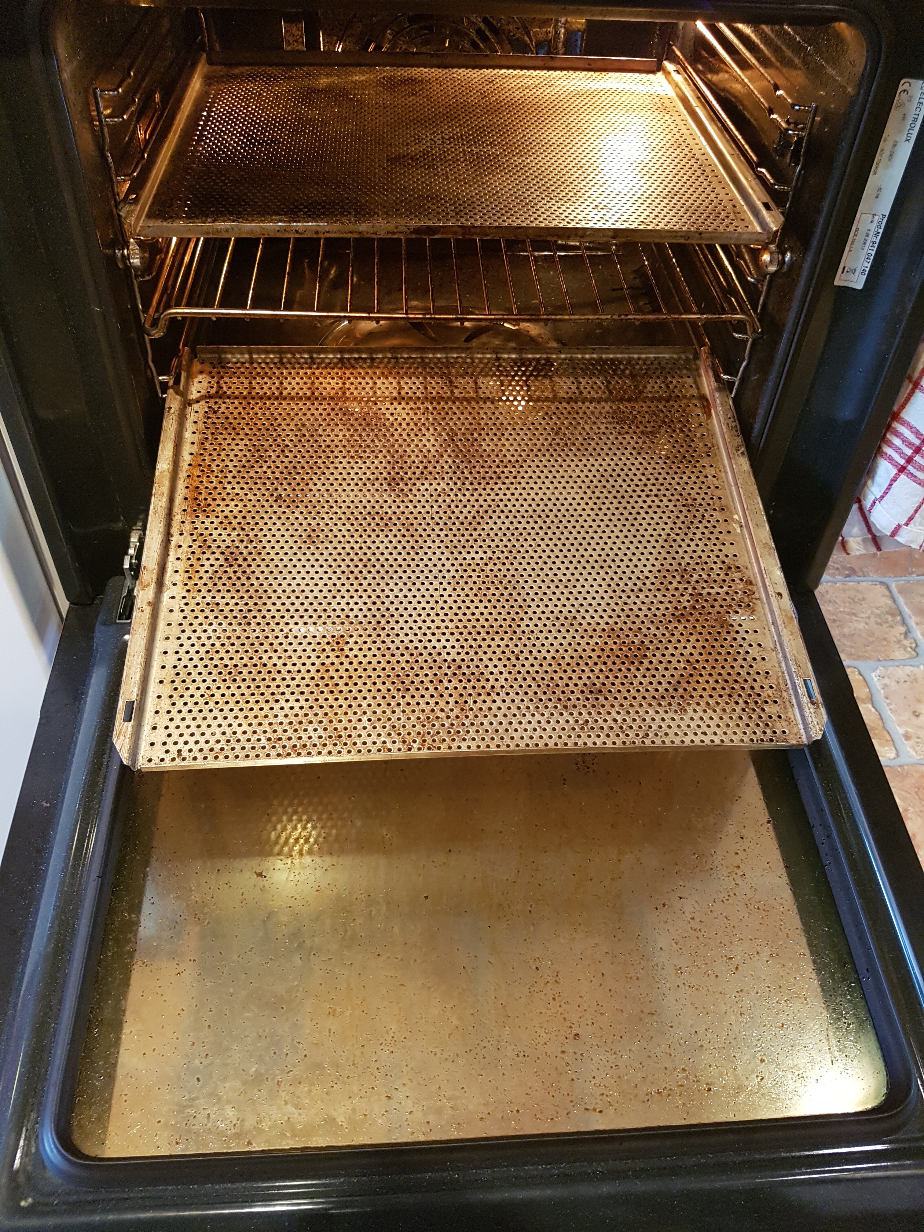 Utgångsläget såg ut så här. En normalfamiljs brutala utnyttjande av ugnen under några veckor utan rengöring tar ut sin rätt.